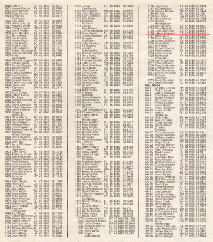 Jahan was ranked number 1,196 in his age group by the USA Triathlon in 2002.